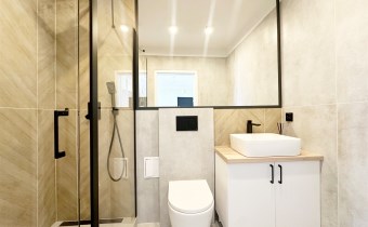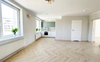 - duży salon z aneksem kuchennym (nowa zabudowa i sprzęty)